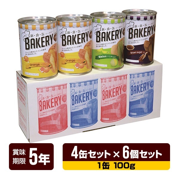非常食 新食缶ベーカリー 缶入りソフトパン(メロン・黒糖 各1缶 オレンジ 2缶) 4缶セット×6個セット アスト 5年保存 パン 缶詰 長期保存 防災食 防災グッズ 送料無料