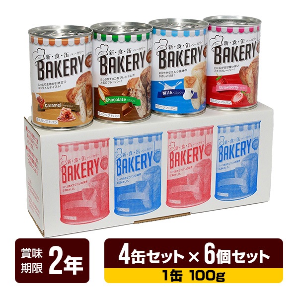非常食 新食缶ベーカリー 缶入りソフトパン(イチゴ・チョコレート・ミルク・キャラメル 各1缶) 4缶セット×6個セット アスト 3年保存 パン 缶詰 長期保存 防災食 防災グッズ