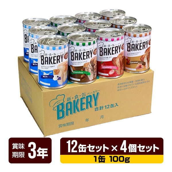 非常食 新食缶ベーカリー 缶入りソフトパン(イチゴ・チョコレート・ミルク・キャラメル 各3缶) 12缶セット×4個セット アスト 3年保存 パン 缶詰 長期保存 防災食 防災グッズ