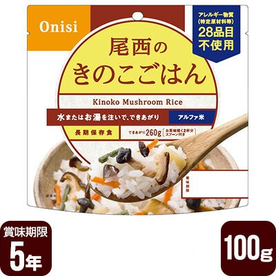アルファ米 尾西のきのこごはん 100g 尾西食品 防災食 非常食 ゆうパケット 送料込