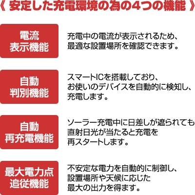 ※日陰、日光が不足の場合、出力電流が不安定で電力が増えない可能性があります。